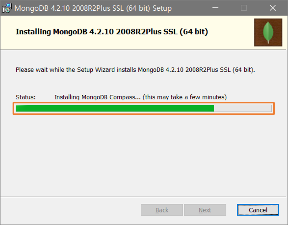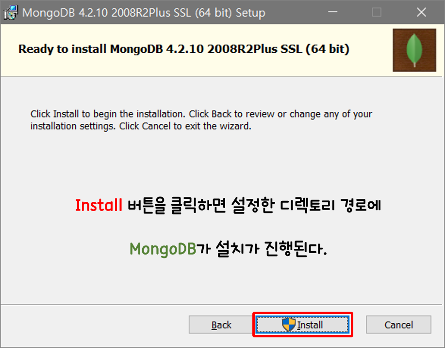 Install 버튼을 클릭하면 위에서 설정한 세팅되로 몽고DB의 설치를 시작한다.
