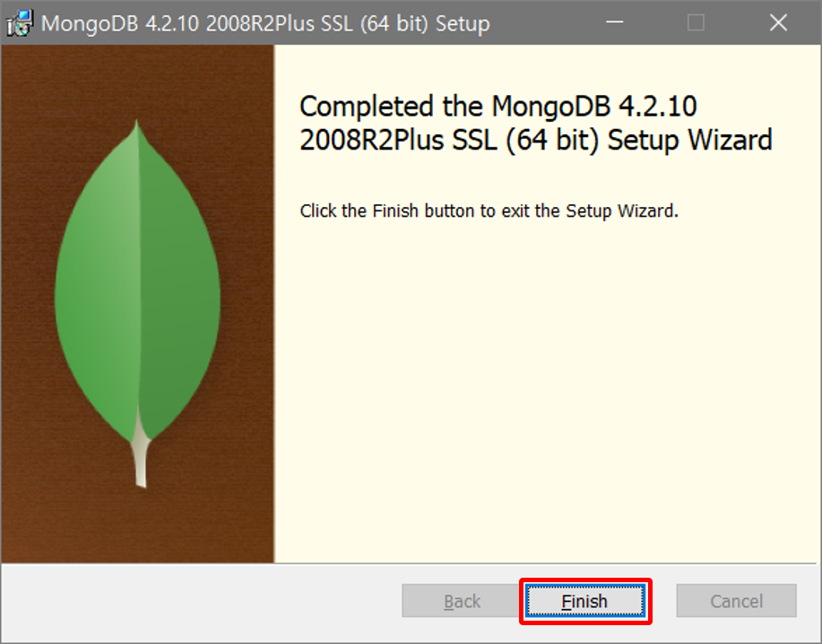 Finish 버튼을 클릭하면 몽고DB의 설치가 완료되었다.