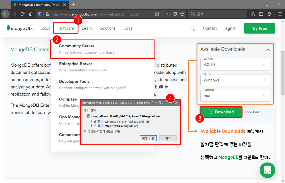 ④ mongodb-버전정보.msi 파일을 다운로드 받는다.