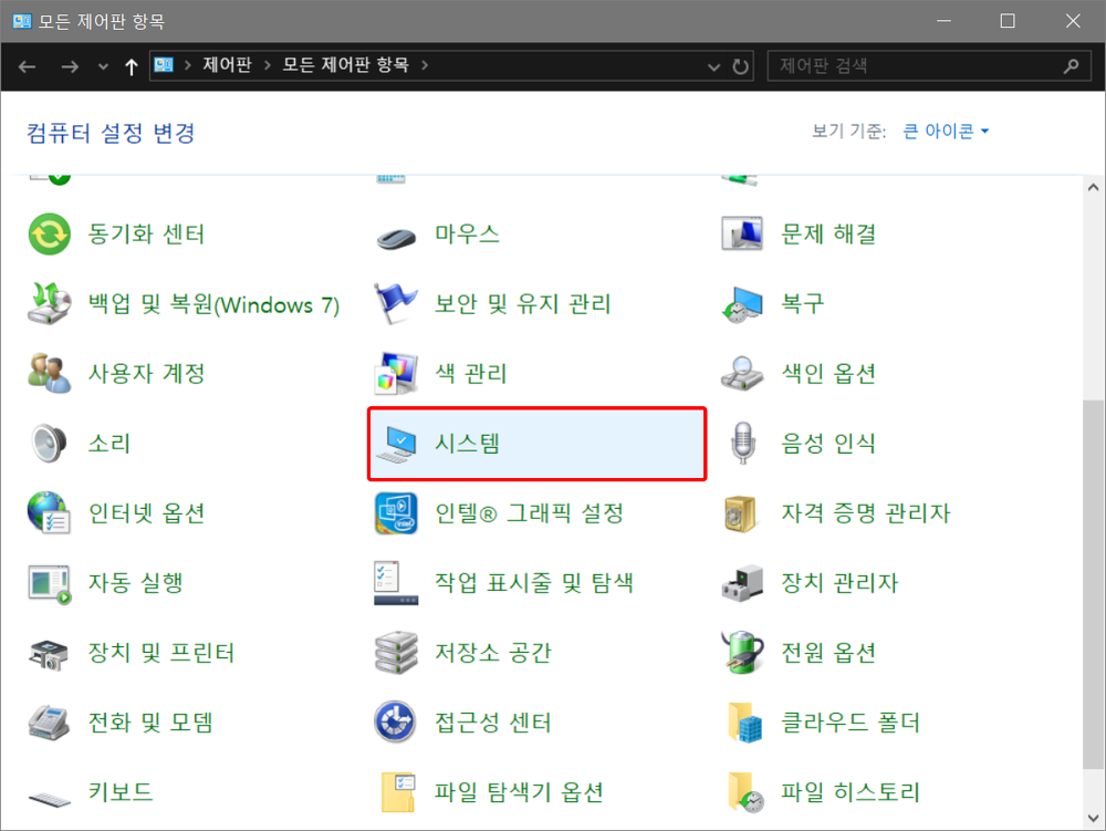 제어판 > 시스템을 실행한다.