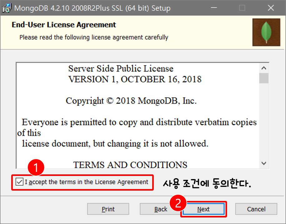 다운받은 mongodb-버전정보.msi 파일을 실행하고.